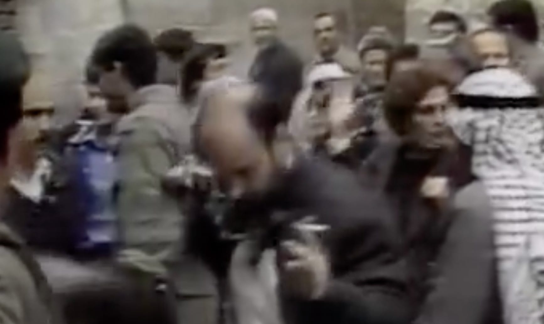 An American tourist protests the rough treatment of Palestinians by Israeli Border Control, 1987.